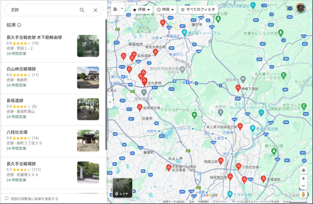 地図アプリに「史跡」と入力して検索してみましょう。