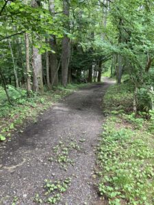 「戦の道」以外の中世の道は、神社やお寺が沿道にあるのが普通です。もとからある道沿いに寺社を造営したかと思うくらいです。少なくとも伽藍の建築には多くの人々が資材を運んで往来したから、道沿いに建築するのは当たり前だったのかもしれません。