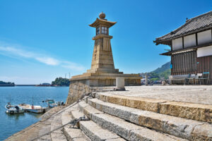 港の入り口や船着き場などに建てられた常夜灯は、海上の舟にとっての大事な目印でした。